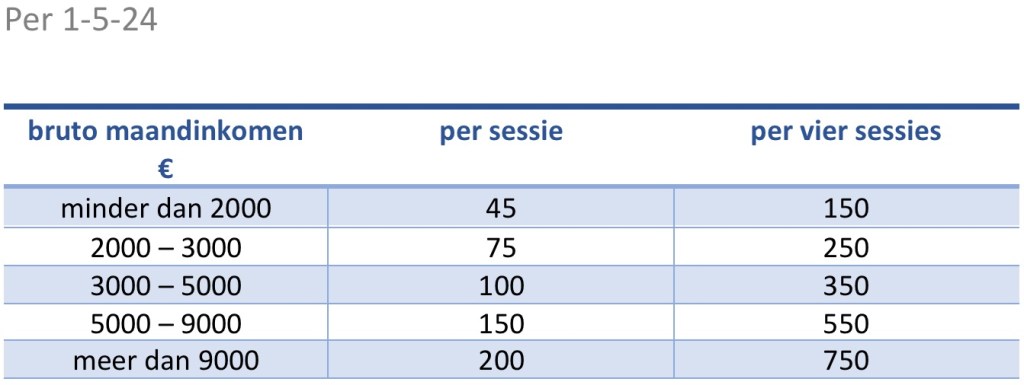 Om de gesprekken voor iedereen betaalbaar te maken, hanteer ik tarieven naar draagkracht. Het kennismakingsgesprek is gratis.